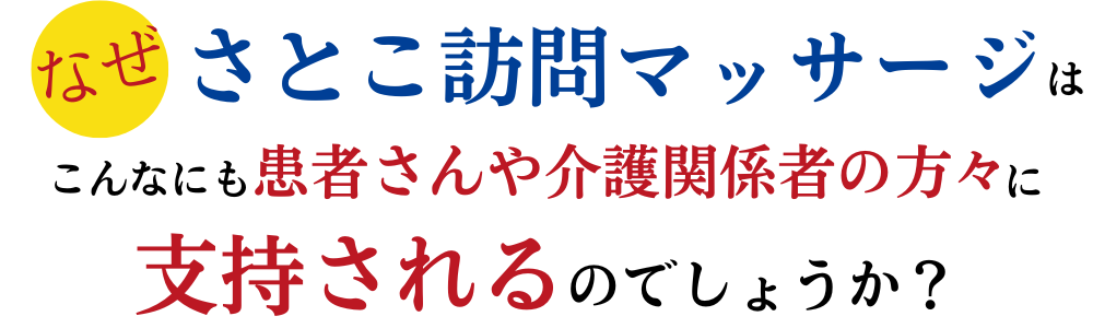 国家資格(あん摩マッサージ指圧師)を有した施術者が医師の同意に基づき施術を行うサービスです。ご自宅や高齢者施設などに訪問して施術します。関節拘縮や筋萎縮が起こっている部位に、施術者が手技を用いてリハビリ、関節可動域の拡大と、筋力増強を促し、症状の改善を目的とするマッサージの事です。